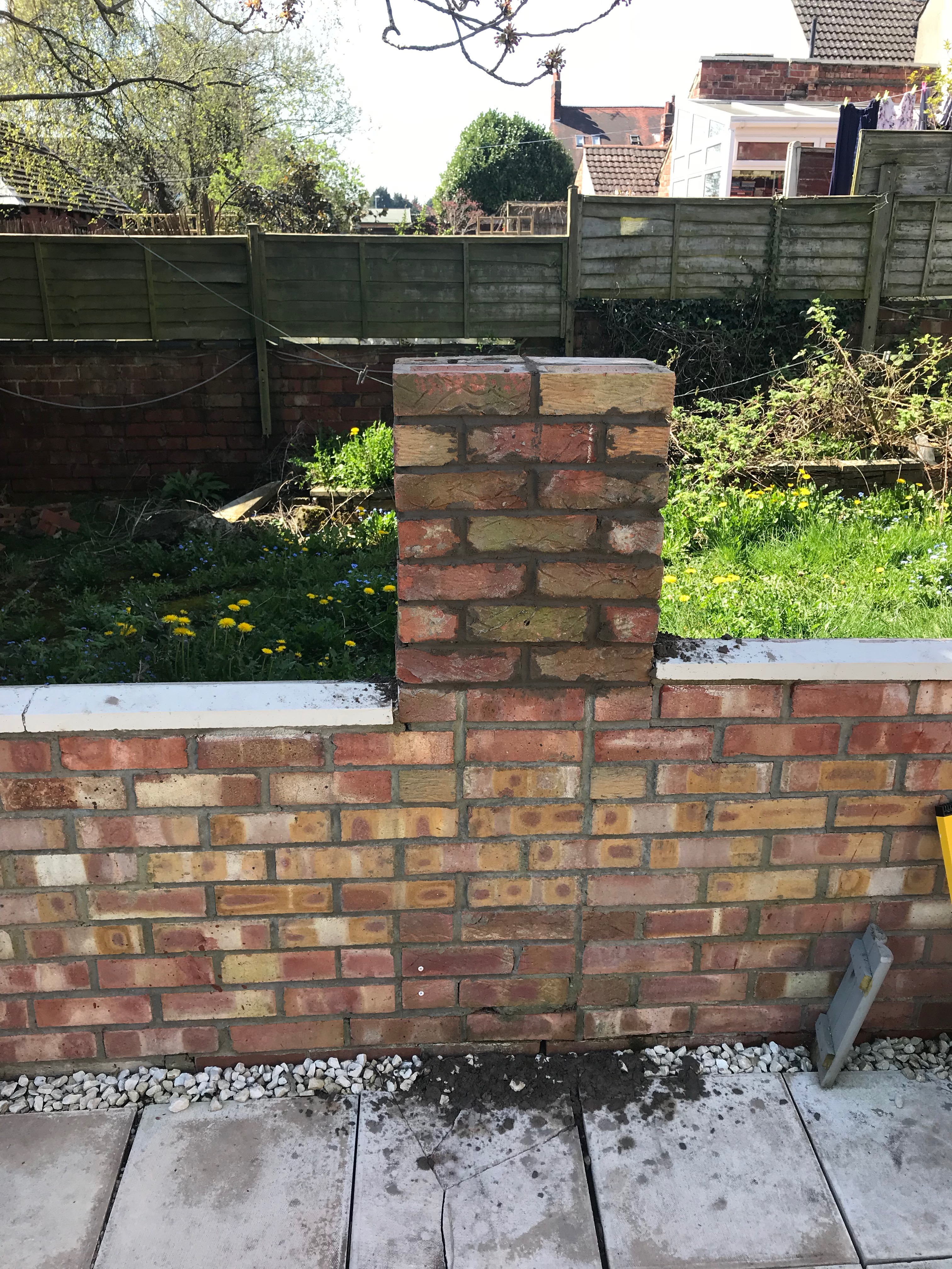 Research is always my friend and I found that the brick column should of been supported with steel bars running vertically through to strengthen it. Another botch, although I’m not sure who built the wall, so can’t really complain about it to anyone.