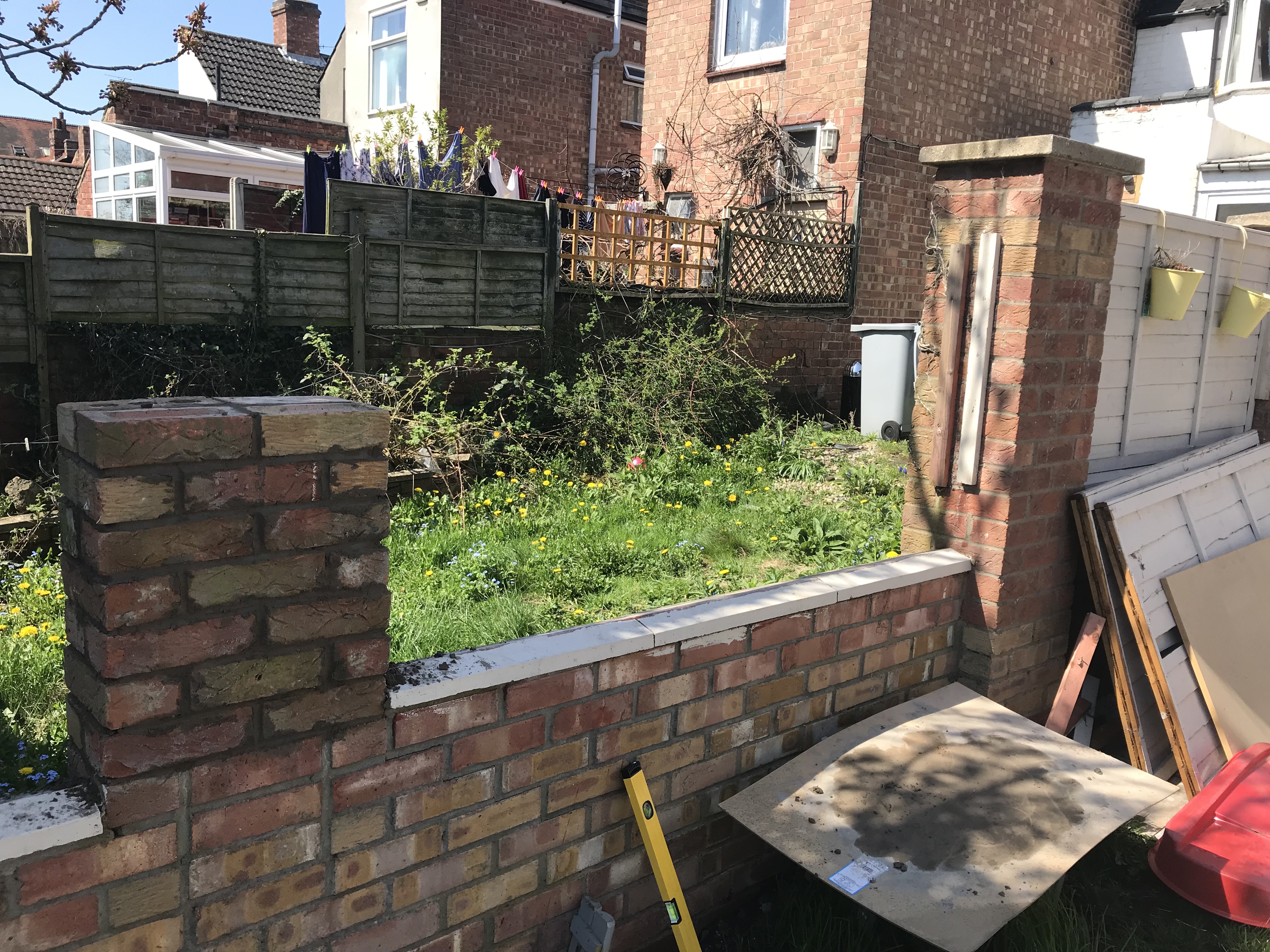 After going into the neighbours garden and collecting our fence and bricks – most fell into our garden. I decided I’d try and fix it myself, I’ve never attempted brick work before and thought – “hell, how hard can it be! “
